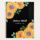 This elegant Planner is decorated with watercolor sunflowers and green foliage on a black background.