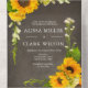Elegant sunflower florals on rustic a chalkboard background. Modern simple all in one invitation.