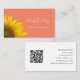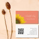 Elegant sunflower QR code business card, with a yellow country floral image on a peach background. With white typography lettering, you can customise with your own name or title. The back of the card has a white background and black customisable lettering. A modern professional way to get the word out about your business.