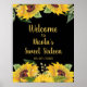 Pretty birthday welcome sign with sunflowers and foliage. The words can be changed to suit your own details or requirements. Would be perfect for a sweet sixteen birthday party.