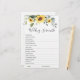 Elegant Sunflowers Eucalyptus Bridal Shower Game