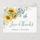 Elegant Sunflowers Eucalyptus Rustic Thank You Postcard