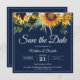 Elegant Sunflowers Navy Blue Floral Wedding Save The Date