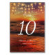 Elegant Sunset Beach Lights Summer Wedding Table Number