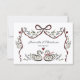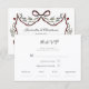 Add a touch of whimsical charm to your wedding invitations with this delightful response card. The design showcases a playful ribbon bow intertwined with delicate floral branches and charming red hearts, creating a festive and romantic frame. The sweet depiction of two swans at the bottom symbolizes enduring love. This card is perfect for a garden wedding, a rustic celebration, or any couple looking for a unique and memorable way to collect RSVPs.