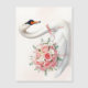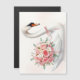 This elegant illustration features a graceful white swan adorned with a delicate bouquet of soft pink roses, symbolizing love, beauty, and timeless romance.