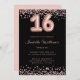 Cute black & rose gold chunky glitter sweet 16 balloons birthday party invitation.