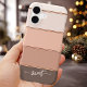 Elegant phone case featuring a modern striped design in sweet chocolate and peach earth colours with rose gold stylised stripes, with your own name or other text(s) (optional).
