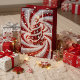 The swirling motion creates a magical holiday atmosphere, while the rich red tones and soft white highlights bring warmth, elegance, and premium seasonal charm. Decorated with glossy ornaments and tiny wrapped gifts, this design adds a luxurious touch that instantly elevates any present.
