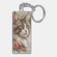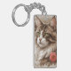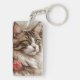 Show off your love for cats with this stunning, artfully detailed key chain featuring a majestic long-haired feline with striking green eyes. Set against a soft, neutral background with a subtle floral accent, this design blends realism with a touch of elegance. The warm tones and intricate fur detailing create a cozy yet sophisticated look, making it the perfect accessory for cat lovers who appreciate both beauty and personality in their everyday essentials.