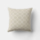 A pretty and elegant throw pillow with a tan beige and white geometric quatrefoil pattern.