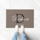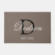 Designed with customisable brown tan background and black monogram initial on the centre. Personalised with couple's last name in classy white calligraphy script lettering and year established in white numbers on lower front centre. Makes a great housewarming or bridal shower gift idea.
