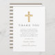 Elegant Taupe Cross Boy Baptism Thank You Card