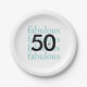 Add an elegant touch to your 50th birthday celebration with stylish paper plates with a large bold black "50" over the word "fabulous" repeated 4 times in light teal text. A small black ampersand is nestled within the zero of the fifty.