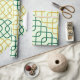 This sophisticated wrapping paper features a timeless pattern of interlocking, rounded squares in alternating diagonal bands of deep teal and gold. The pattern creates a sense of depth and movement across a subtle, light sage-green background, offering a refined and high-end feel. Perfect for a wide variety of gift-giving occasions, from weddings and anniversaries to professional milestones, this design adds a touch of classic, retro-inspired elegance to any package.