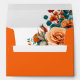 This is an elegant orange floral wedding envelope with teal blue and burnt orange watercolor flowers on white on the inside. It is perfect for a romantic fall garden wedding celebration.