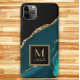 Elegant teal, black and gold glitter marble iPhone 11 Pro Max case personalised with your monogram/initial and name. Transfer this design to any of a large selection of phone and iPad cases.