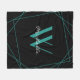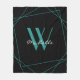 Elegant Teal Black Monogram Geometric Name Script Fleece Blanket
