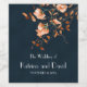 This wedding wine bottle label is so elegant, minimal floral details in burnt orange contrast beautifully with the rich dark navy watercolor background. Thin yet elegant san serif font on white typography complete the design. Ideal wedding party supply and decor for a simple, yet elegant fall wedding.