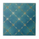 Elegant Teal Blue & Gold Squares Ceramic Tile