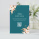 Modern wedding enclosure cards with elegant boho fall floral accents, minimalist typography design on teal colour background.