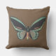 Elegant watercolor image of a teal green, brown and black butterfly set on a brown background to add a dash of colourful nature to your deck or patio.