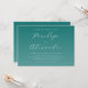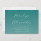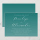 This elegant wedding invitation features a minimalist design with a solid teal background and crisp white text. The layout is centered, showcasing the names in a large cursive script, while the rest of the details are presented in clean sans-serif fonts for clarity. The color palette creates a sophisticated contrast, enhancing readability and adding a touch of modernity to the formal occasion. Perfect for couples seeking a stylish yet straightforward invitation that emphasizes typographic elegance without additional decorative elements.
