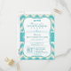 Elegant housewarming party invitation on teal, light blue, and cream off-white chevron pattern. Invite features skeleton key and formal vintage look graphics.