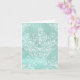 White damask filigree and floral pattern on softly shaded pastel teal background.