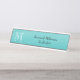 Elegant Teal Faux Metal Student Monogram Desk Name Plate