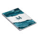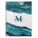 Elegant Teal Geode Agate Monogrammed Gold Glitter Notebook