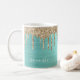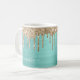 Elegant Teal Girly Glitter Drips Metallic Name Coffee Mug