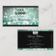Elegant Teal Glitter Sparkle Stars with Logo Black Business Card