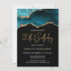 This elegant 90th birthday invitation features a watercolor image of an agate geode in shades of teal with faux gold highlights. The words "90th Birthday" appear in faux gold glitter in decorative modern handwriting font. Customise it with the name of the honoree in gold coloured text and the details in white. The same teal agate image appears on the reverse side.