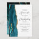 The left-hand edge of this elegant modern wedding invitation features a teal watercolor agate border trimmed with faux gold glitter. The customisable text combines script and sans serif fonts in charcoal grey on a white background. The reverse side features a matching teal and gold agate design.