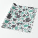 Elegant Teal Grey Brown Clematis Floral Pattern Wrapping Paper