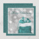 Elegant custom teal Merry Christmas cards featuring a sack full of Christmas presents. Easily personalise online.
