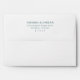 This wedding envelope features a minimalist design with centred text on a plain white background, creating an elegant and sophisticated look. The muted teal green colour palette adds a touch of modernity, while the clean sans-serif font ensures clarity and readability. The layout emphasizes simplicity and balance, making it perfect for couples seeking a contemporary yet timeless aesthetic for their special day.