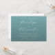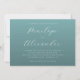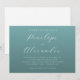 This elegant wedding invitation features a minimalist design with a calming teal background and crisp white typography. The layout is clean and sophisticated, utilizing ample negative space to highlight the names in flowing script font, creating a focal point for the invitation. Customizable text fields allow personalization for dates, times, and locations, while the overall style conveys a sense of tranquility and anticipation perfect for a formal celebration. Ideal for couples seeking a modern yet timeless look, this invitation sets the tone for an unforgettable event.