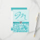 Pack of 10 or more - Elegant Teal Blue and Light Blue with Monogram Wedding RSVP Cards with Diamond Heart.