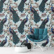 Elegant Teal Peacocks and Magnolia Flowers Floral Wallpaper