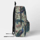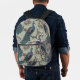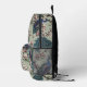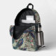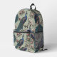 This Elegant Teal Peacocks and Magnolia Flowers Floral Printed Backpack drawn in Chinoiserie style pattern features hand-drawn blue and teal peacocks perched on Magnolia tree branches in bloom on an elegant sage green background with magnolia bloom silhouettes.