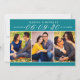 These stylish wedding save the date announcement cards include three 2 x 3" engagement photos with the date featured in elegant script writing. Personalise the card template wording on the front and back of the card for your big day. The teal green background and text colour can be customised to coordinate with your wedding colour scheme.