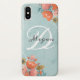 Elegant Teal Pink Floral Monogram Case-Mate iPhone Case