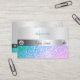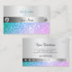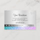 Make a lasting impression with this elegant and quality business card design featuring a luminous teal and pink gradient glitter effect print with glamourous diamonds graphics and a shimmery silver background.