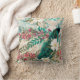 Elegant teal peacocks and pink and white floral and leaves decorator throw pillow.