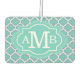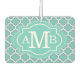 Elegant Teal Quatrefoil Pattern Custom Monogram Car Air Freshener