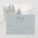 This wedding RSVP card features a minimalist and elegant design with a soft, muted teal background that creates a serene and sophisticated atmosphere. The layout is vertically oriented, with ample negative space enhancing the focus on the text elements. A combination of cursive script for "RSVP" and clean sans-serif fonts for the response options adds subtle visual interest while maintaining readability. Perfect for formal events, this card conveys an understated elegance, making it ideal for couples seeking a modern yet classic invitation style.
