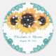 Elegant Teal Rustic Chic Sunflower Wedding Classic Round Sticker