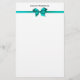 Elegant Teal Satin Bow on White Stationery